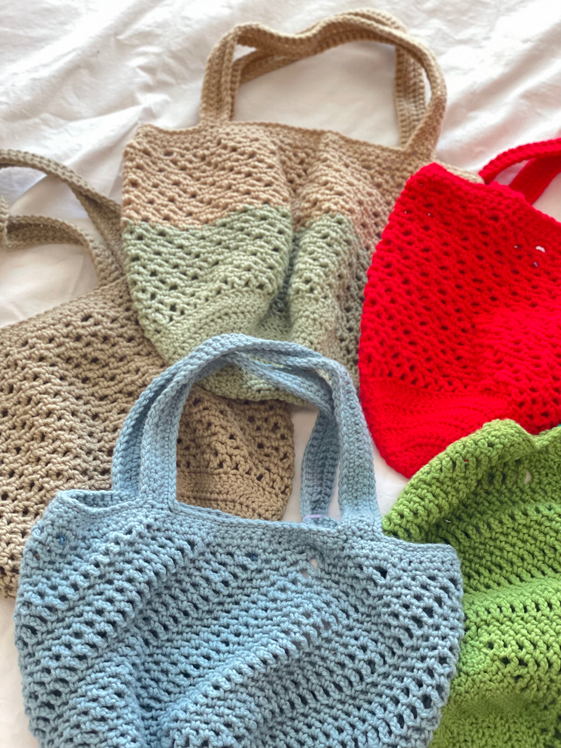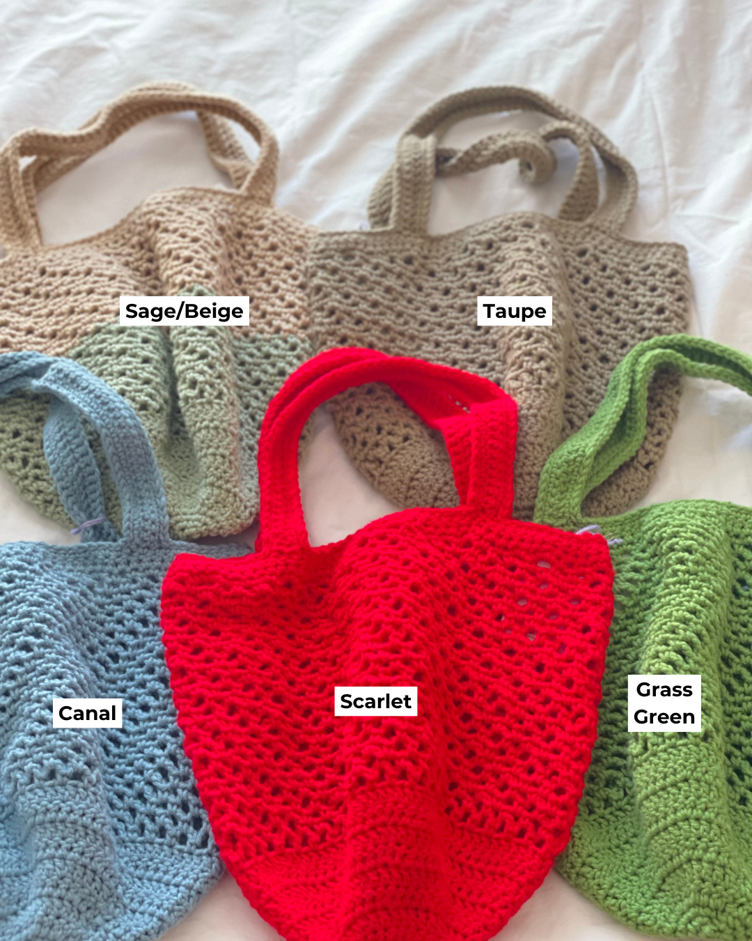 Mesh crochet bag perfect for farmers markets, picnics, and beach days! This bag has two-way stretch. She may look small when she arrives, but you will find it will stretch to accommodate all your things! Ships within 1-3 business days.