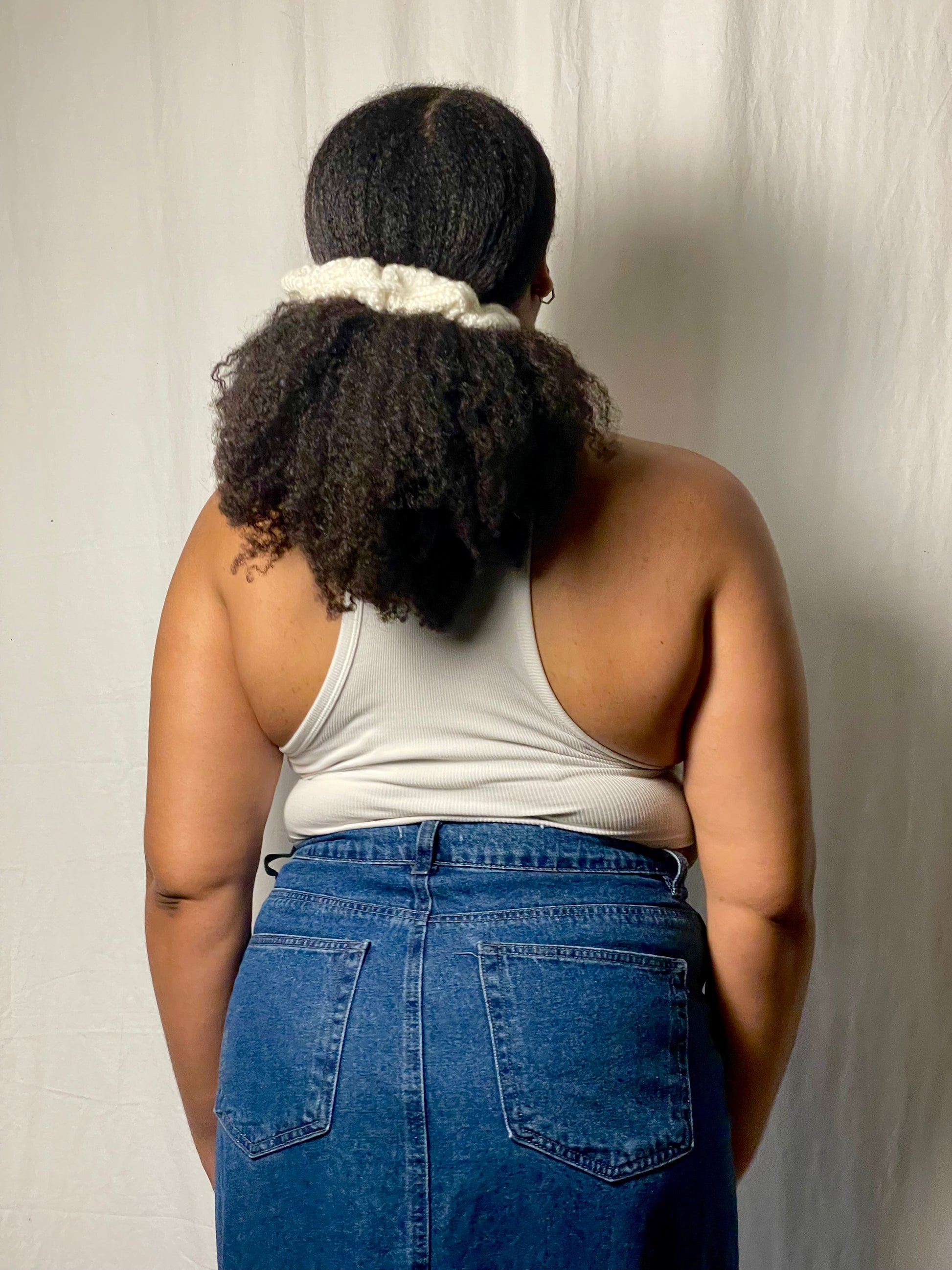 Small scrunchie is slightly larger than a typical scrunchie. Crochet scrunchies are perfect for throwing your hair up, or finishing a look! All scrunchies are made with an unbreakable elastic and are machine washable.